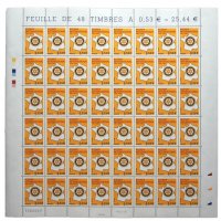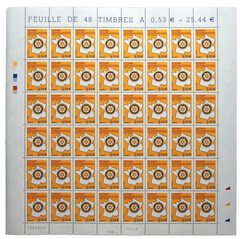 | Commentaire | Existe également en autoadhésif. Il y a cent ans, Paul Percy Harris, jeune avocat de Chicago (États-Unis), et trois de ses amis créent le Rotary. Le nom de Rotary a été proposé par P. Harris car il correspondait à la rotation des lieux de réunion dans les bureaux de chacun des membres. L |