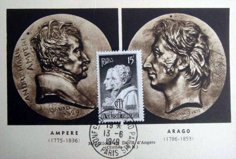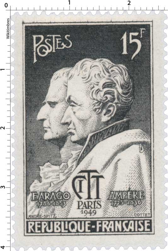 | Description | C.I.T.T. Paris 1949 - André Marie Ampère (1775-1836), physicien et François Arago (1786-1853), physicien, né à Estagel |