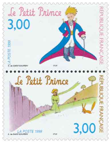| Commentaire | Émis en bloc feuillet de 5 TP et en bande de 5 timbres et 2 vignettes. Description synthétique du visuel : La bande reprend quelques thèmes de l’œuvre d’Antoine de Saint Exupéry : le petit prince en habit, le renard, l’astéroïde B612, le serpent et la fleur. |