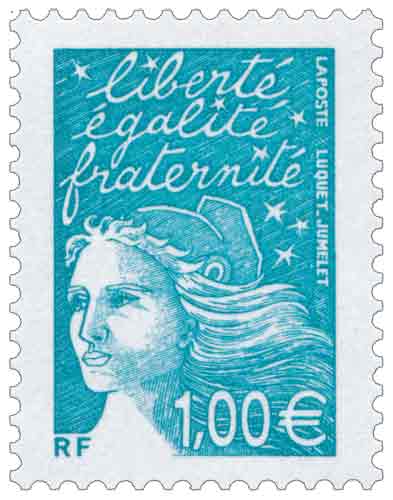 | Commentaire | Les timbres imprimés en 2001, l’ont été en feuilles monobloc de 100 (impression TD6), c'est-à-dire sans pont, séparant la feuille en deux blocs de 50TP (impression RGR), portent dans la marge supérieure la mention : « Timbres en euros mise en vente à partir du 1er janvier2002 ». Le timbre se collectionne soit en haut de feuille complète, soit en séparé avec bord de feuille attenant. Description synthétique du visuel du timbre : En janvier 2002, 15 nouvelles Marianne du 14 juillet seront émises en simple affichage euro. Le TVP, sans affichage de la valeur, est émis plus tôt (août 2001). La nouvelle série émise correspond aux : 8 pièces en euro : 0,01 € - 0,02 € - 0,05 € - 0,10 € - 0,20 € - 0,50 € - 1,00 € - 2,00 € 1er, 2e et 3e échelon de poids de la lettre zone 1, service prioritaire : TVP / 0,69 € (= 4,50 F) / 1,02 € (= 6,70 F) 1er, 2e et 3e échelon de poids de la lettre zone 1, service écopli : 0,41 € (= 2,70 F) / 0,53 € (= 3,50 F) / 0,64 € (= 4,20 F) 1er échelon de la zone 2 et 4, service prioritaire : 0,58 € (= 3,80 F) / 0,67 € (= 4,40 F). Existe avec bandes phosphorescentes à cheval. Existe avec bandes phosphorescentes brisées aux cases 99 et 100. |