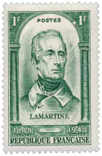 | Commentaire | Émis en France en 1948 dans le cadre de la commémoration de la Révolution de 1848, ce timbre gommé rend hommage à Lamartine, figure centrale de l’événement, à la fois écrivain majeur du romantisme et acteur politique décisif de février 1848 ; il s’inscrit dans une série consacrée aux grandes figures et thèmes de la Deuxième République, avec une vocation essentiellement commémorative assortie d’un usage postal complémentaire, la surtaxe étant affectée à la Croix-Rouge française, tandis que la gravure en taille-douce, d’après un dessin de Paul-Pierre Lemagny exécuté par René Cottet, illustre la tradition française du portrait gravé de personnalités historiques, associant lisibilité postale et valeur symbolique, l’émission intervenant en 1948, année de multiples rappels mémoriels liés au centenaire de la révolution et à la refondation républicaine. |