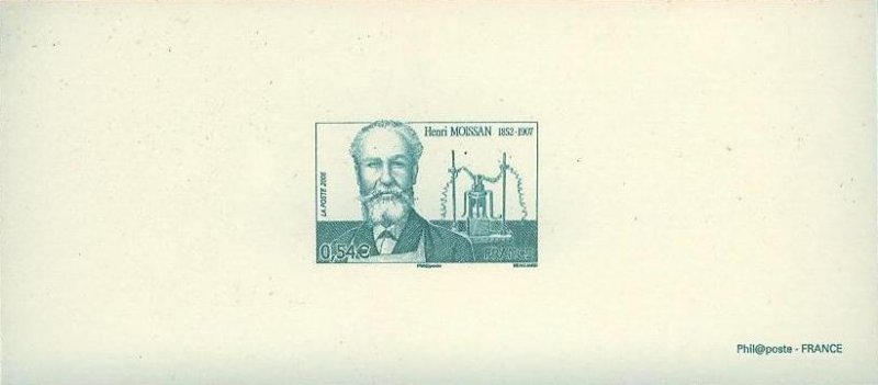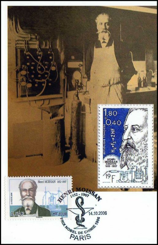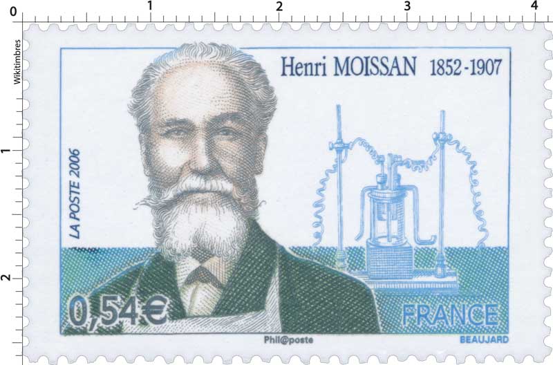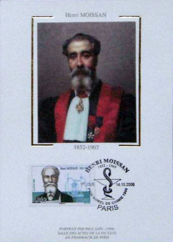 | Commentaire | Henri Moissan est né à Paris en 1852. Il hésita longtemps entre des études de pharmacie et de chimie. En 1879, il devint pharmacien de première classe puis fut nommé Professeur Agrégé en 1882 tout en continuant ses recherches en chimie. A partir de 1884 Henri Moissan concentra tous ses efforts sur l’étude du fluor qu’il isola en 1886 et ouvrit par la suite la voie des synthèses à hautes températures. Ses travaux réalisés à l’aide du four électrique ont donné une immense impulsion dans le monde technologique. Aujourd’hui, Henri Moissan fait toujours figure de précurseur et on lui doit de nombreuses technologies et découvertes scientifiques de premier plan. Il mourut à 54 ans, le 20 février 1907, deux mois seulement après avoir reçu en décembre 1906 le prix Nobel de chimie.. |