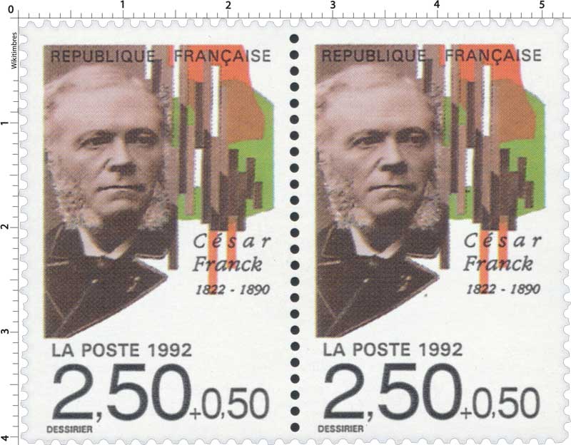 | Description | César Franck (1822-1890), professeur, organiste et compositeur belge (provenant d'une feuille de 50 TP) |