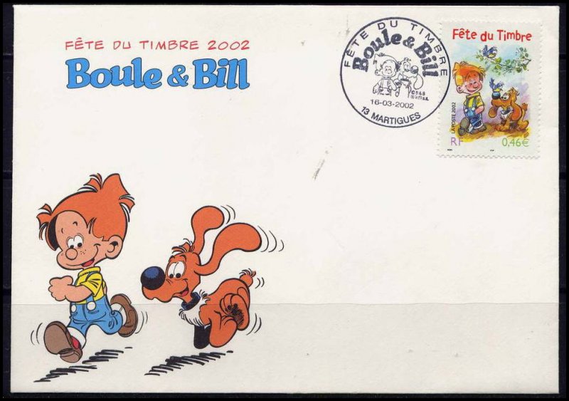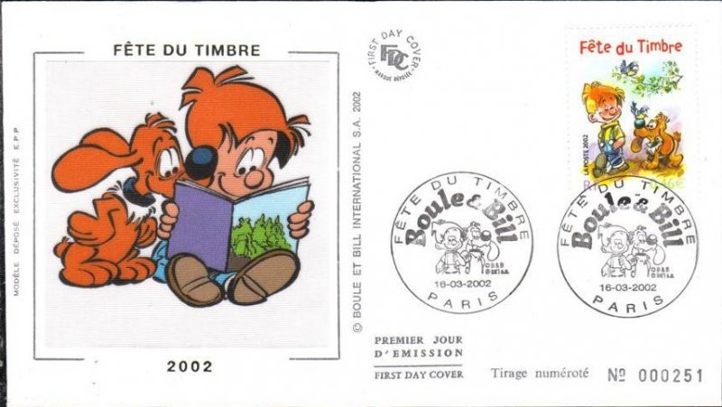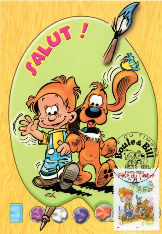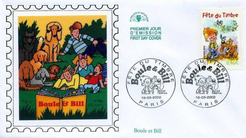 | Description | Fête du timbre 2002. Boule et Bill de Jean Roba (1930-2006), auteur de bandes dessinées né en Belgique |
