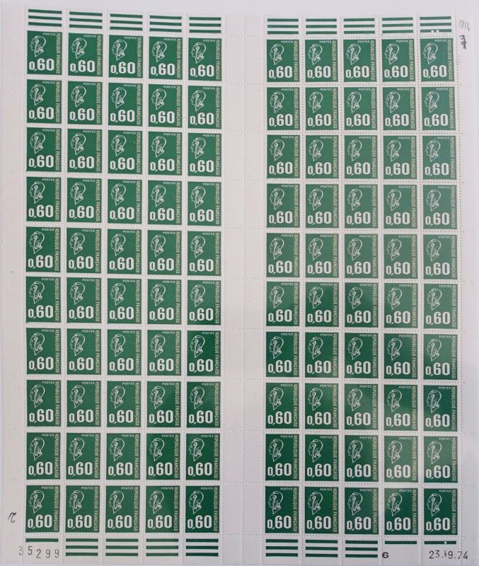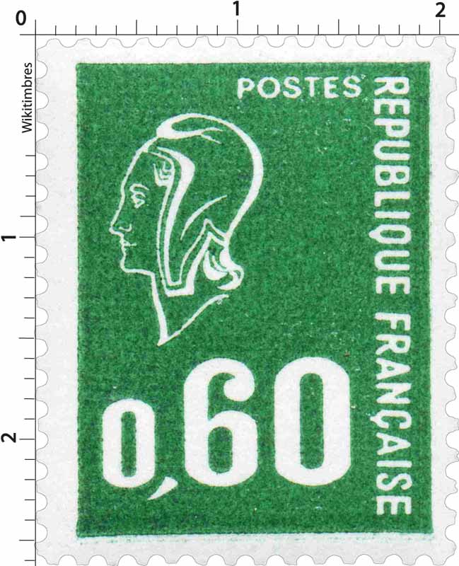 | Commentaire | Imprimé en feuille de 100 TP en rotatif. Ces timbres non surchargés de bandes phos sont destinés aux départements d'outre-mer. La gomme est dite tropicale pas de signature du graveur et du dessinateur sur le timbre |