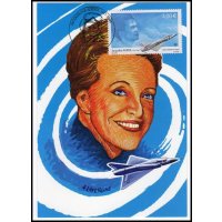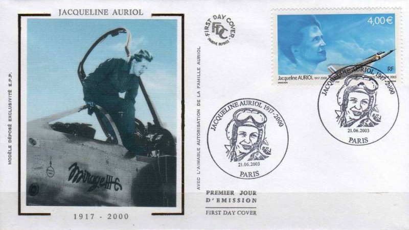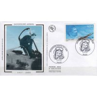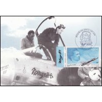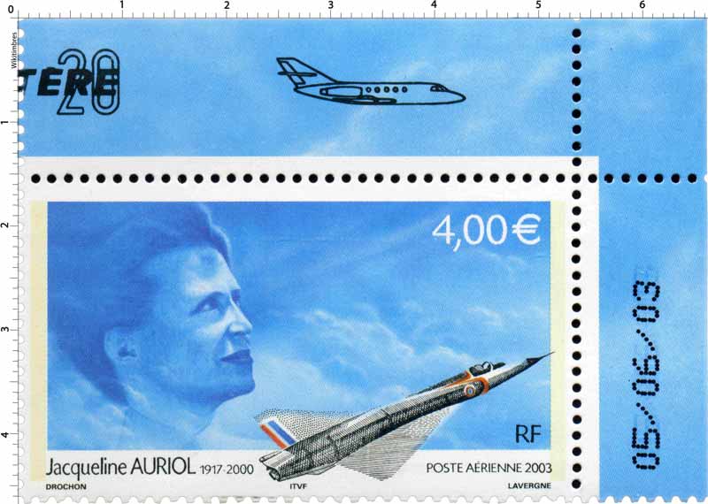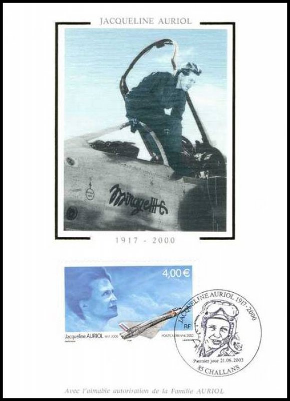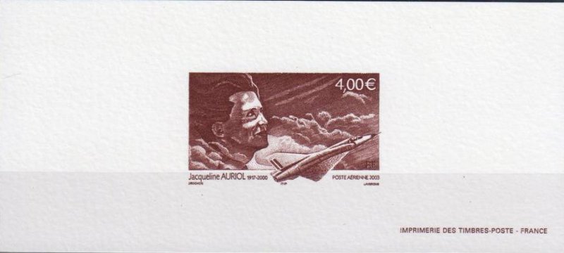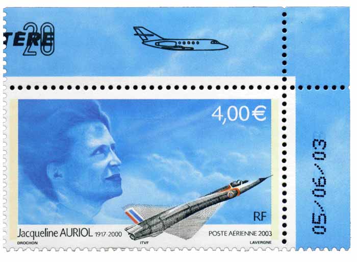 | Commentaire | JACQUELINE AURIOL 1917 - 2000 Description synthétique du visuel du timbre : Sur le contour de la mini feuille figurent des plans coupes de certains des avions qu’a piloté Jacqueline Auriol et sur lesquels elle a établi différents records du monde de vitesse : le Mystère IV N (record en 1955), le Mirage III R (record en 1963) et le Mystère 20 (record en 1965). Le même timbre imprimé en feuilles de 40 Tp est dentelé 13 x 13demi. Le timbre du bloc de 10 TP comporte des mentions imprimées dans les marges. Le timbre de feuille comme le timbre du feuillet de 10 TP sont imprimés sur papier neutre sous UV. |