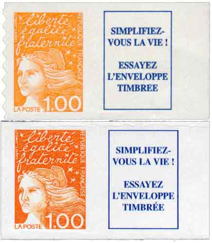 | Commentaire | Marianne du 14 Juillet provenant de carnet, gommage adhésif ( type I dessus et II dessous) |