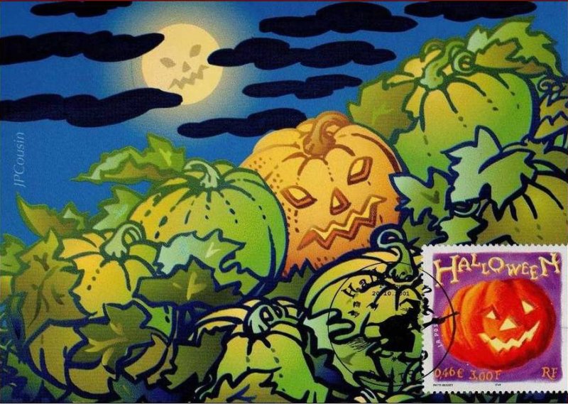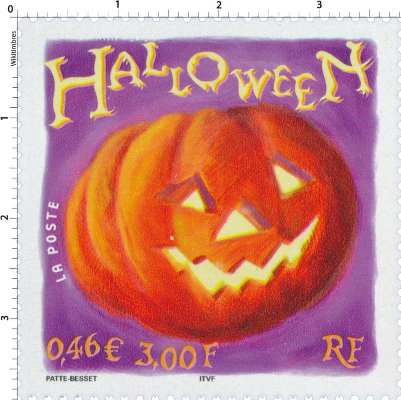 | Description | Halloween. A l'occasion de la fête d'Halloween, représentation d'une citrouille. (1er timbre phosphorescent) |