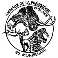 | Commentaire | La Préhistoire est considérée comme la période de l'histoire humaine qui a précédé l'apparition de l'écriture. De nombreux animaux aussi étranges que fantastiques ont vécu à cette époque. Quatre d’entre eux ont été retenus pour illustrer les timbres de la série Nature 2008, deux prédateurs (en Amérique du Sud et du Nord) et deux herbivores (en Europe) : le mammouth ou mammouth laineux, un mammifère herbivore d’environ 3,5 mètres de haut, le smilodon ou tigre à dents de sabre, un mammifère carnivore de 1,20 mètres de haut, le mégaloceros, un mammifère herbivore de 2,10 mètres de haut, Le phorusrhacos surnommé l’oiseau de la terreur, un oiseau carnivore et prédateur de 3 mètres de haut. Ils sont accompagnés d’un doedicurus qui s’abreuve et de bisons, des hommes entourent le mammouth, et un macrauchenia gît entre les griffes du smilodon. |