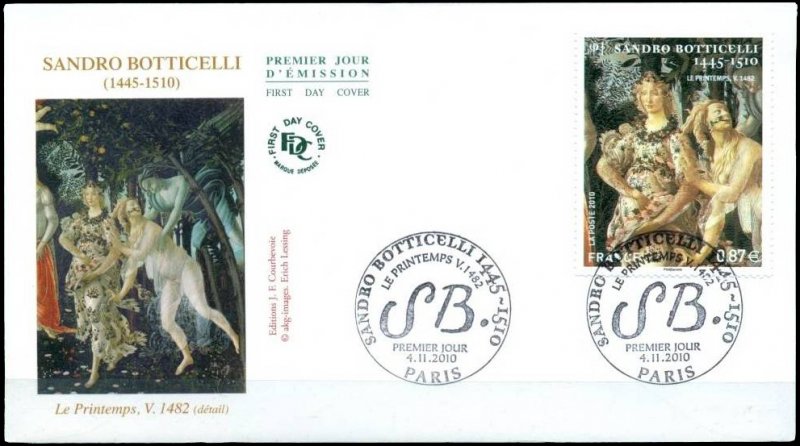 | Commentaire | Existe également sur papier gommé. PREMIER JOUR : 4 novembre 2010. Vente Anticipée : au Salon d’Automne - Paris (Porte de Champerret) et le Carré d’Encre -Paris VENTE NATIONALE à partir du 8 novembre 2010 “Premier Jour” Aurélie Baras |