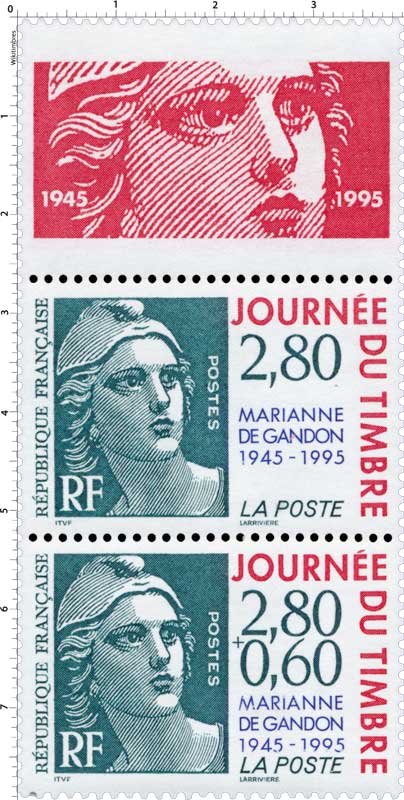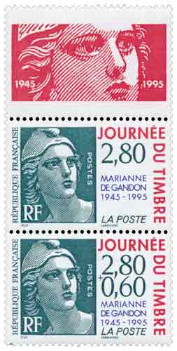 | Description | Journée du Timbre 1995. Cinquantenaire de la Marianne de Gandon. Paire de carnet 2,80 attenant à 2,80 + 0,60 + vignette |