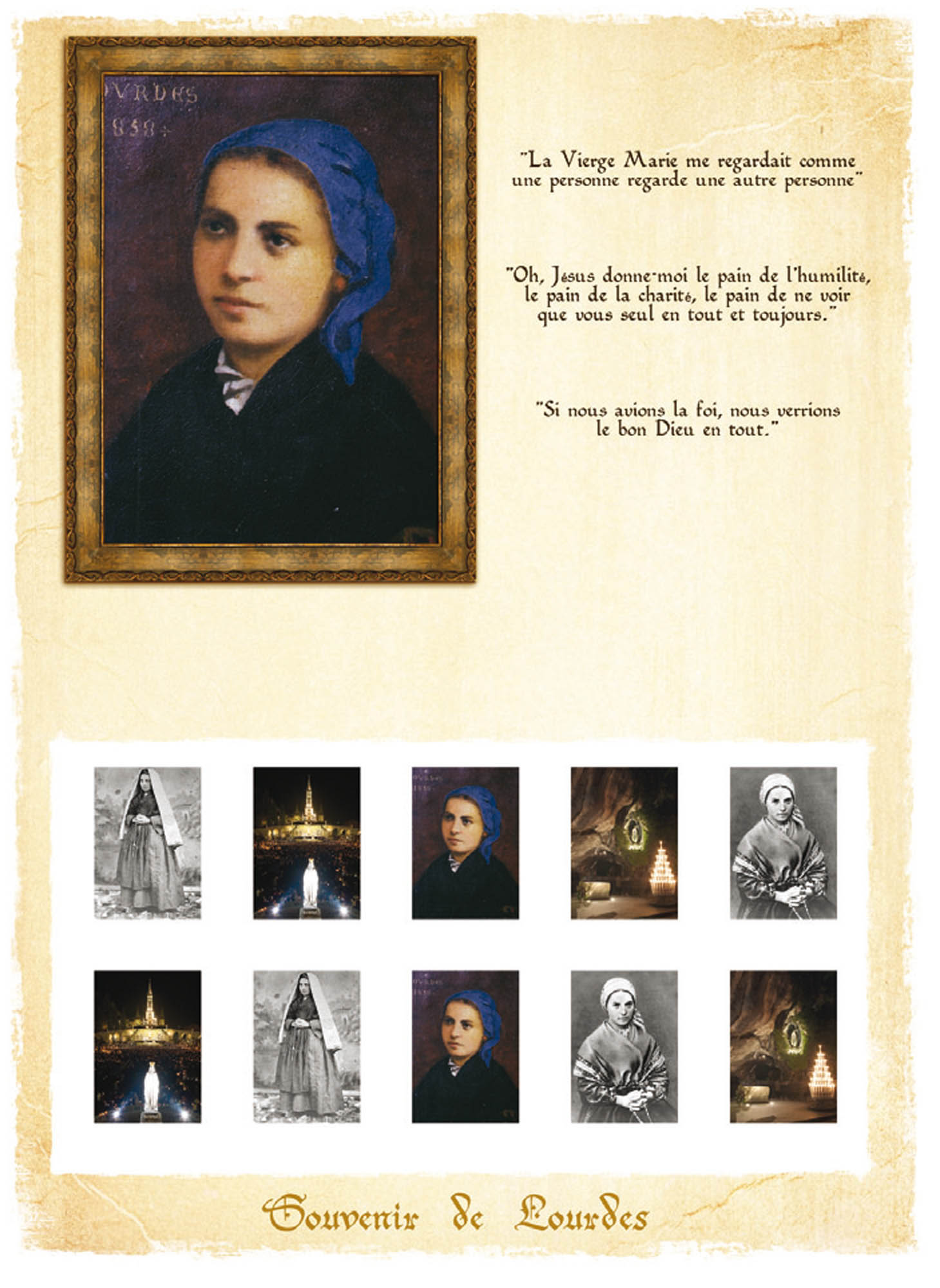 | Commentaire | Livré plié blisté Regards sur un lieu saint… Le site de la “grotte miraculeuse” attire chaque année plus de 6 millions de pèlerins et de visiteurs venus du monde entier. Ce collector contient 10 timbres-poste (5 en double exemplaires) à validité permanente pour une lettre jusqu’à 20 g à destination de la France. |