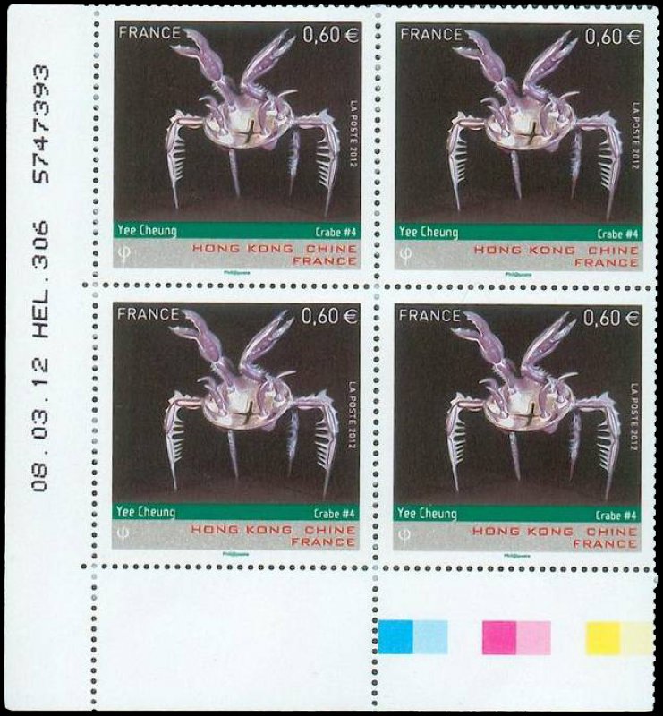 | Commentaire | Timbre à date “Premier Jour” conçu par Aurélie Baras Cheung Yee, le " Crabe#4 " Cheung Yee né en 1936 à Guangzhou, en Chine est l'un des pionniers à créer une adaptation modernisée de l’art ancestral chinois. Attiré par la forme particulière du crabe, il en a recueilli des centaines, du jouet en plastique à la sculpture en porcelaine, qui lui ont servi de source importante d'inspiration artistique. Fabriquée en bronze, en 1985, 50 x 59 x 81 cm, cette sculpture est maintenant conservée au Musée des Arts de Hong-Kong. |