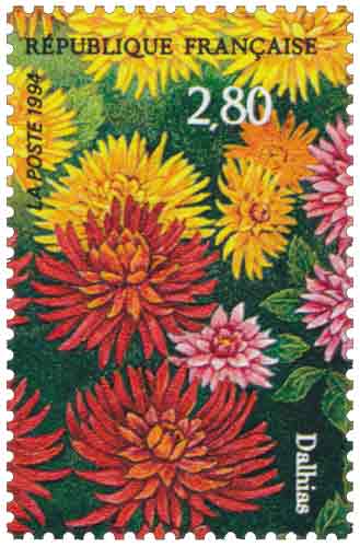| Description | Salon du Timbre. 1er Salon européen des Loisirs du Timbre. Dahlias d'après Pierrette Lambert, née à Orches (Vienne), en 1928 |