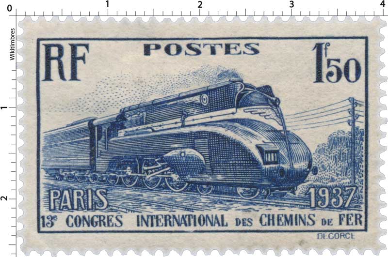 | Commentaire | La locomotive représentée sur le timbre est dénommée E215 3.1280 carénée Super-Pacific Nord. Ce type de train a été crée pour augmenter les vitesses et destiné au transport de personnes. C'est en quelque sorte un peu l'ancètre du TGV. En savoir plus sur ce modèle : vidéo Émis à l’occasion du 13ᵉ Congrès international des chemins de fer tenu à Paris en 1937, ce timbre met à l’honneur la locomotive à vapeur carénée de type Pacific, symbole de la recherche de vitesse et de modernité ferroviaire à la veille de la Seconde Guerre mondiale. Le choix d’une Pacific carénée n’est pas anodin : dans les années 1930, ces machines incarnent l’apogée de la traction vapeur, tant par leurs performances que par leur esthétique, où l’aérodynamisme devient un argument technique autant que visuel. Dessiné et gravé par Georges-Léo Degorce, le timbre adopte une composition horizontale dynamique, soulignant l’élan et la puissance de la locomotive lancée à pleine vitesse. Le carénage, encore rare à l’époque, traduit les expérimentations menées par plusieurs réseaux européens pour réduire la résistance à l’air et concurrencer l’essor de l’électricité et du diesel. Cette thématique fait directement écho aux débats techniques et industriels abordés lors du congrès de 1937, qui réunissait ingénieurs, exploitants et constructeurs du monde ferroviaire. Sur le plan philatélique, ce timbre appartient aux émissions commémoratives de prestige de l’entre-deux-guerres : imprimé en taille-douce, il bénéficie d’une gravure fine et expressive, caractéristique des grandes émissions françaises de cette période. Son tirage relativement limité et sa durée de vente courte renforcent son intérêt auprès des collectionneurs, notamment dans les thématiques chemins de fer, progrès technique et expositions et congrès internationaux. |