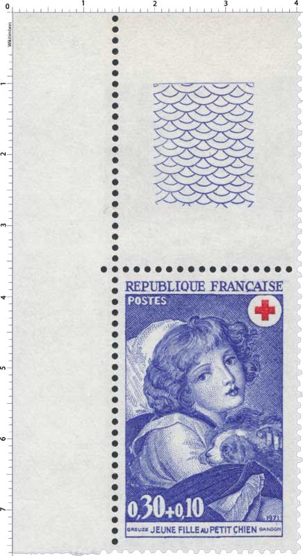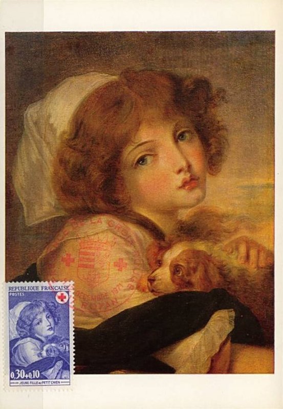 | Description | Au profit de la Croix-Rouge française. La jeune fille au petit chien, œuvre de Jean Baptiste Greuze (1725-1805), né à Tournus |