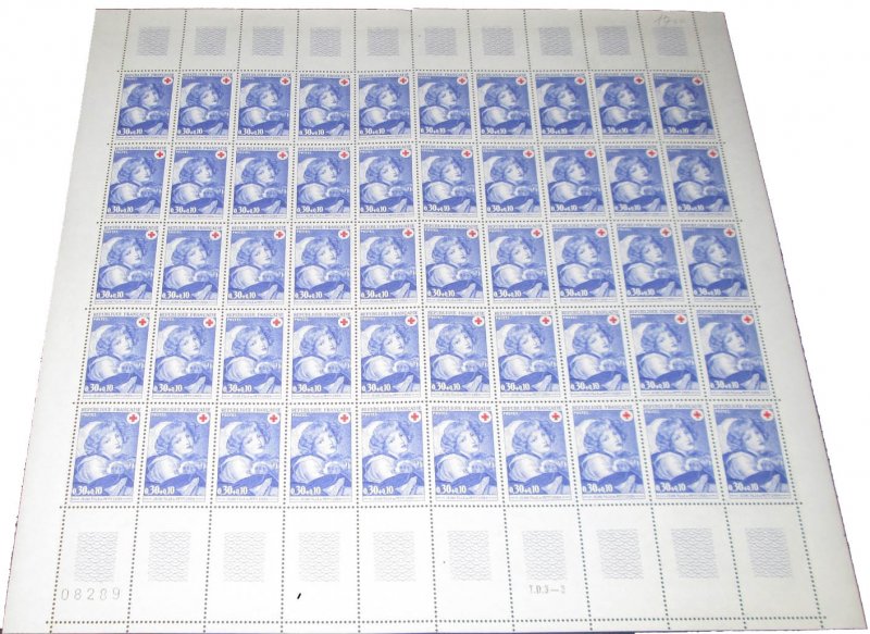| Commentaire | Ce timbre est grevé d'une surtaxe au profit de la Croix Rouge française, issu d'une feuille de 50 TP |