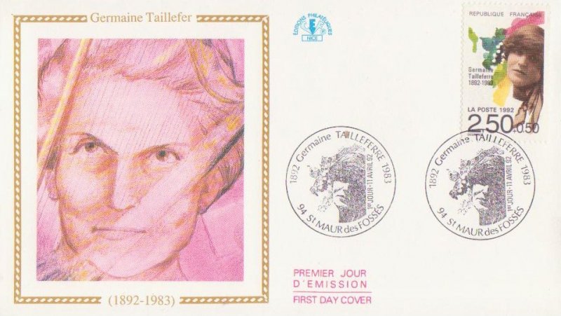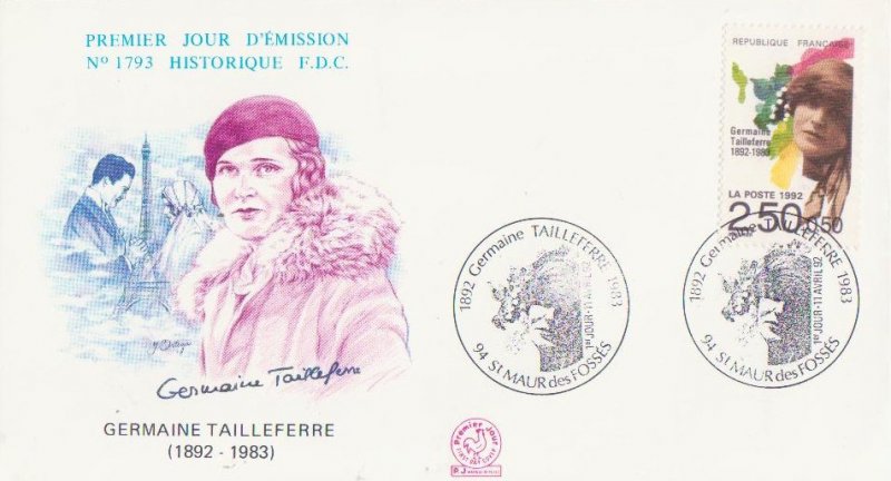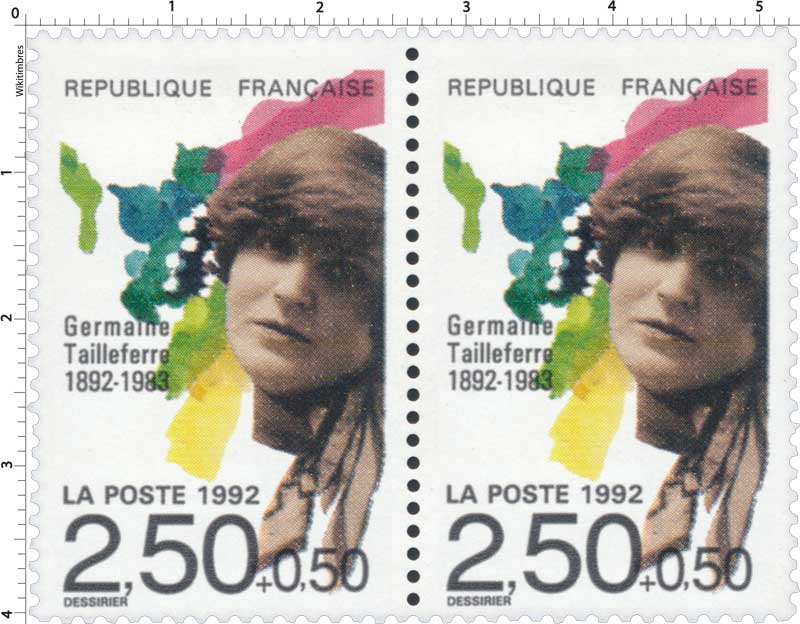 | Description | Germaine Tailleferre (1892-1983), compositrice, née à Saint-Maur-des-Fossés (Val-de-Marne) (provenant d'une feuille de 50 TP) |