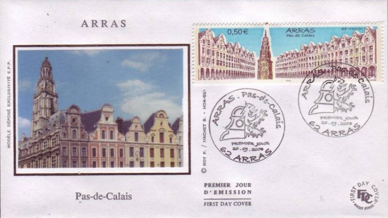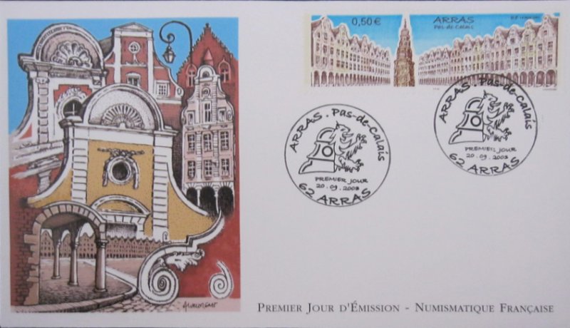 | Description | Arras (Pas-de-Calais), illustré par la Petite Place (ou place des Héros) et le beffroi |