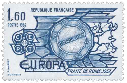 | Commentaire | Ce timbre s’inscrit dans l’émission EUROPA CEPT de 1982, dont le thème commun retenu par la Conférence européenne des postes et télécommunications est consacré aux grands événements historiques ayant façonné le continent. En France, le choix iconographique et mémoriel associe deux jalons majeurs de la construction européenne, séparés par plus d’un millénaire mais unis par une même idée d’organisation politique de l’Europe. La première référence renvoie au traité de Verdun de 843, qui marque le partage de l’Empire carolingien entre les héritiers de Louis le Pieux et constitue un acte fondateur dans la genèse des entités politiques occidentales, notamment celles qui donneront naissance à la France et à l’espace germanique. Ce timbre évoque ainsi l’une des premières tentatives de structuration durable de l’Europe médiévale, issue de l’héritage de Charlemagne et de ses successeurs. La seconde référence historique concerne la construction européenne contemporaine, amorcée après la Seconde Guerre mondiale par la volonté de paix et de coopération entre les anciens États rivaux. Le traité de Rome, signé le 25 mars 1957 par six pays fondateurs, établit la Communauté économique européenne et Euratom, ouvrant la voie à une intégration économique progressive et à une coopération institutionnelle renforcée. Ce timbre rappelle la portée fondatrice de cet acte, qui structure durablement les politiques agricoles, économiques et monétaires, et prépare l’élargissement de la Communauté à de nouveaux États. Par cette émission, la philatélie française souligne le rôle du timbre comme support de mémoire historique et de pédagogie civique, en reliant les racines médiévales de l’Europe à ses réalisations contemporaines, et en inscrivant l’idéal européen dans une continuité longue, à la fois politique, culturelle et institutionnelle. Article rédigé pour WikiTimbres |