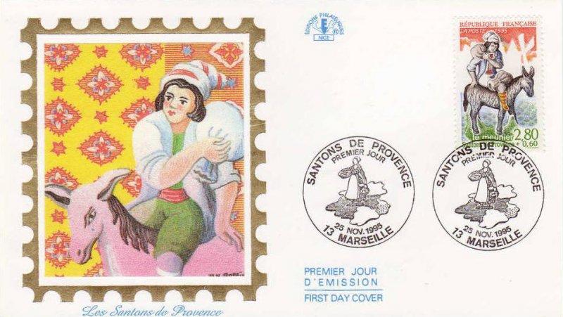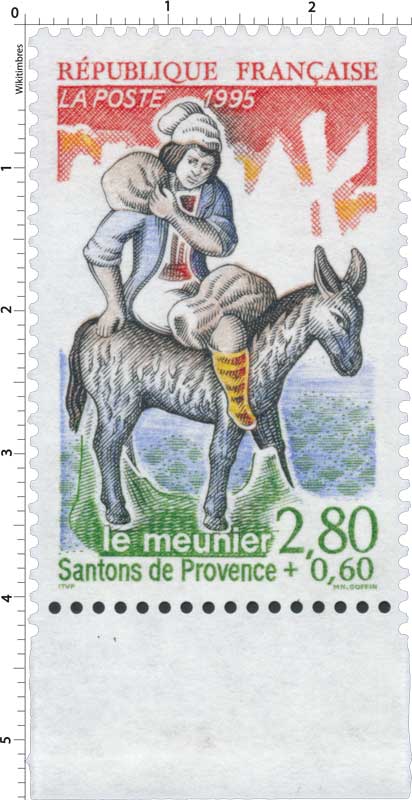 | Description | Les santons de Provence, Le meunier (provenant d'une feuille de 50 TP) |