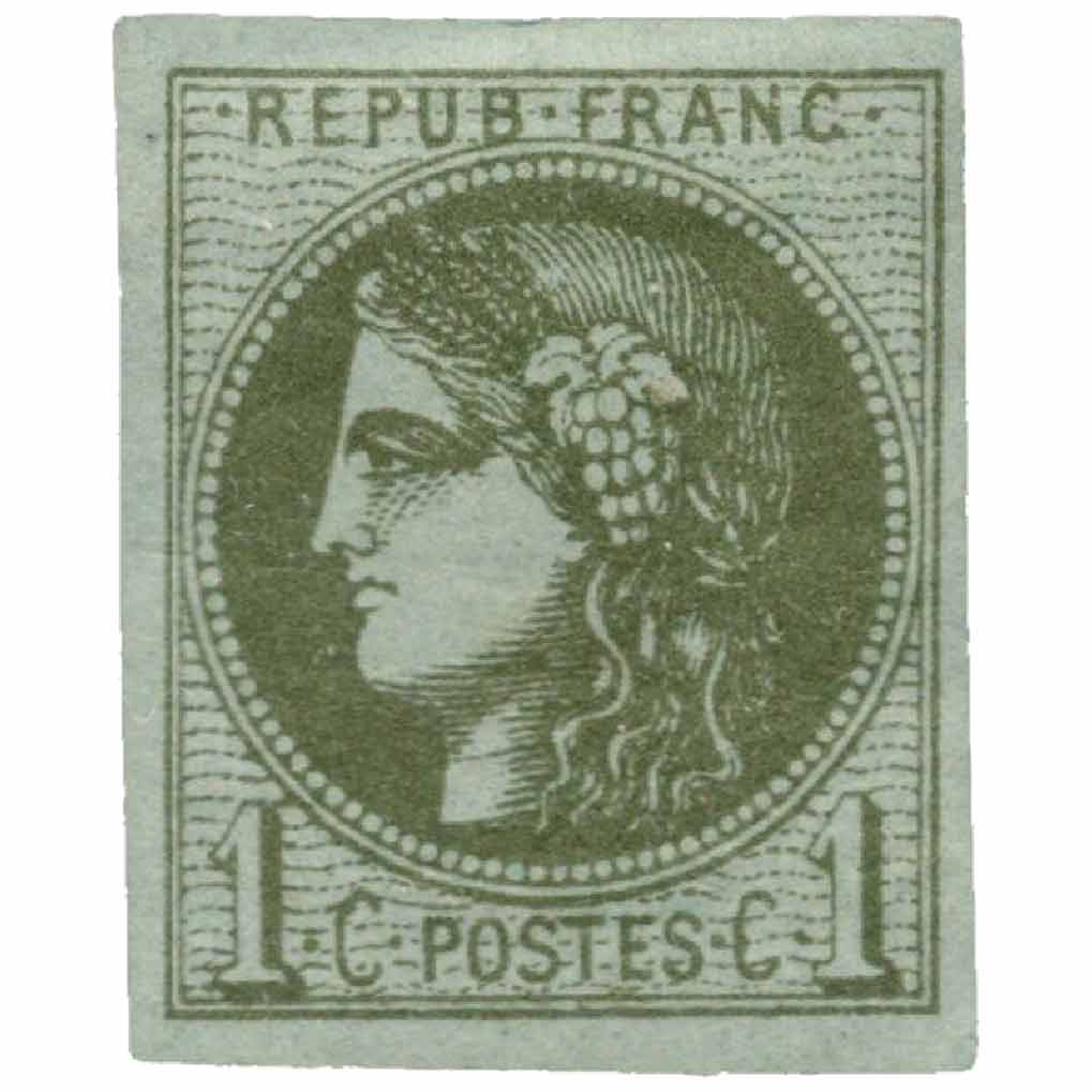 | Commentaire | Cérès - Émission de Bordeaux. Report 2 Retrait 1872 Le 1 centime olive, n°39B, appartient à l’Émission de Bordeaux, réalisée dans l’urgence entre 1870 et 1871 après la capitulation de Napoléon III et l’isolement complet de Paris. Privée des ateliers officiels situés dans la capitale assiégée, l’administration doit assurer l’approvisionnement postal du territoire non envahi. Le Gouvernement de la Défense nationale, replié à Bordeaux, décide alors de produire des timbres provisoires au type Cérès, renouant avec l’effigie républicaine. La Monnaie de Bordeaux, ne maîtrisant pas la typographie employée à Paris, adopte la lithographie, seule technique immédiatement disponible. Ce procédé provoque une usure rapide des pierres, obligeant à multiplier les matrices au fur et à mesure de la production. Le n°39B correspond ainsi au report 3, troisième transfert du dessin sur pierre, identifiable par des caractéristiques propres à cet état de report. Comme toutes les valeurs issues de cette émission improvisée, le 1c olive présente des nuances variables, des différences de finesse dans le trait et des particularités liées à la lithographie. L’ensemble des reports fait de l’Émission de Bordeaux un domaine d’étude particulièrement riche, où l’identification des pierres et la reconstitution des planches constituent un défi majeur pour les collectionneurs spécialisés. |