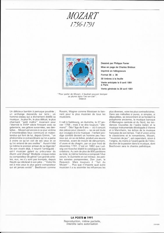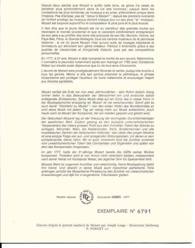 | Description | Bicentenaire de la mort de Mozart (1756-1791), compositeur autrichien, né à Salzbourg |