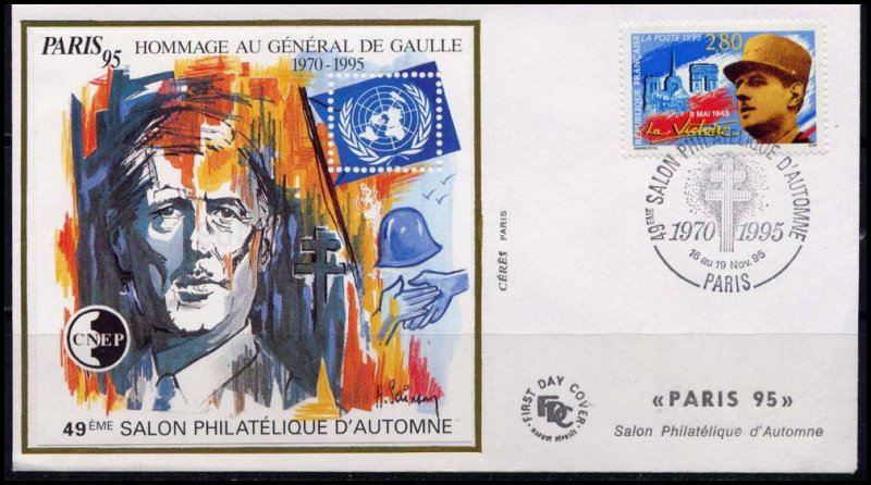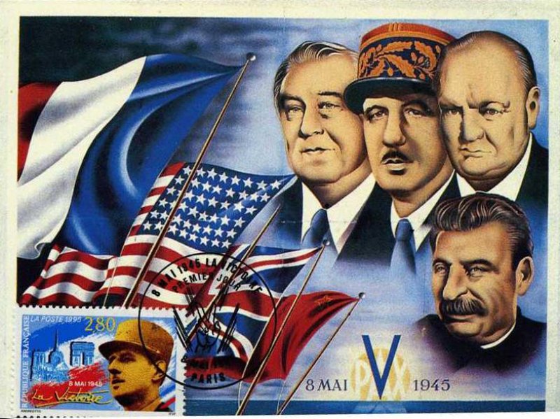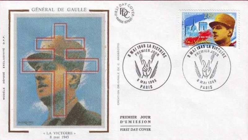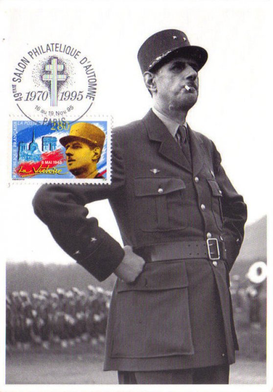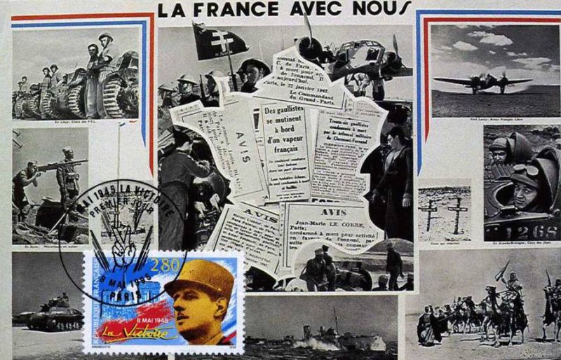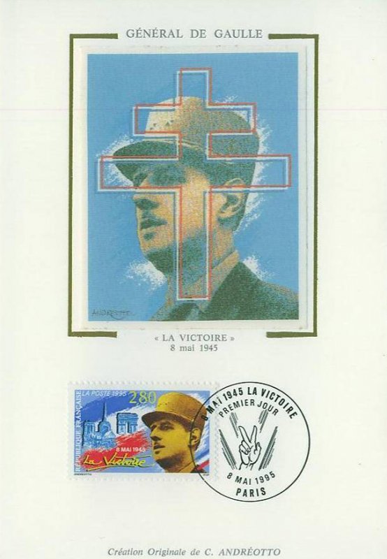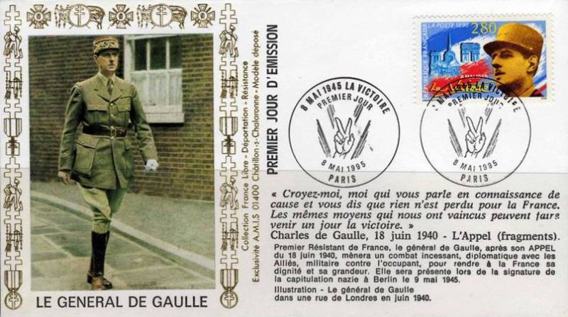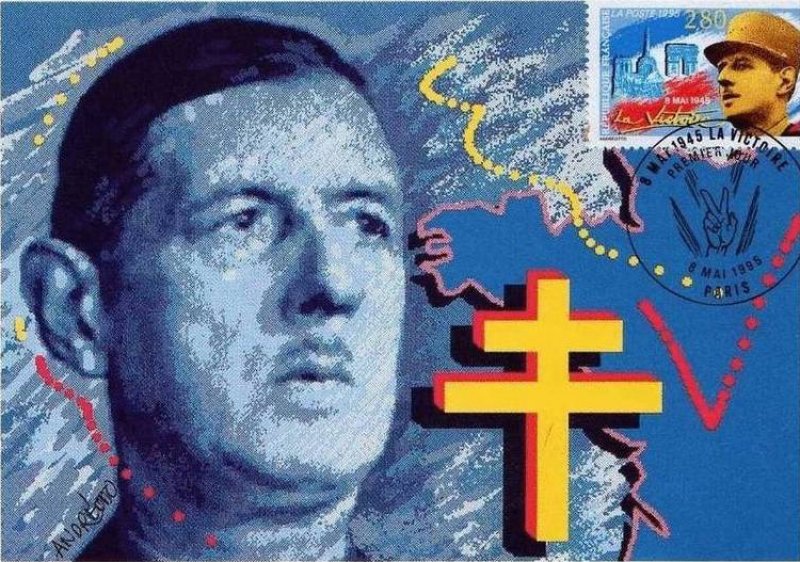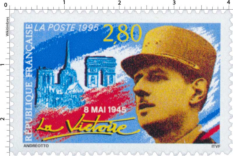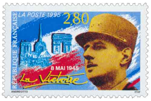 | Description | 8 mai 1945, la Victoire. Portrait du Général de Gaulle avec en fond Notre-Dame et l’Arc de Triomphe |