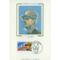 | Commentaire | Visuel : le portrait du Général de Gaulle, avec en arrière plan : la cathédrale Notre Dame de Paris et l'Arc de triomphe, sur les couleurs nationales. Historique : "Paris outragé ! Paris brisé ! Libéré par lui-même, libéré par son peuple, avec le concours des armées de la France", proclamait le Général de Gaulle le 25 août 1944. La veille, à 21 h, les cloches de toutes les églises sonnaient à la volée, fêtant l'arrivée de la 28 DB à l'Hôtel de Ville. Le 26 août, le Général de Gaulle descendait les Champs-Elysées à pied, avec les membres du Comité national de la Résistance. Dans ses "Mémoires de guerre", le Général décrit cette marée humaine qui l'acclamait sur son parcours : "Innombrables Français, dont je m'approche tour à tour, à l'Etoile, au Rond-point, la Concorde, à l'Hôtel de Ville et sur le parvis de la cathédrale Notre-Dame". |