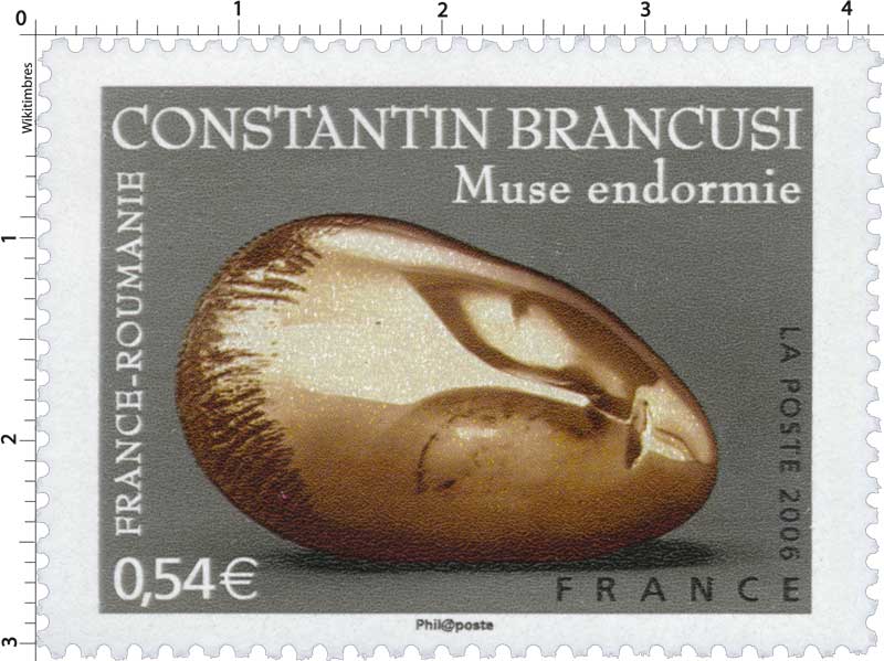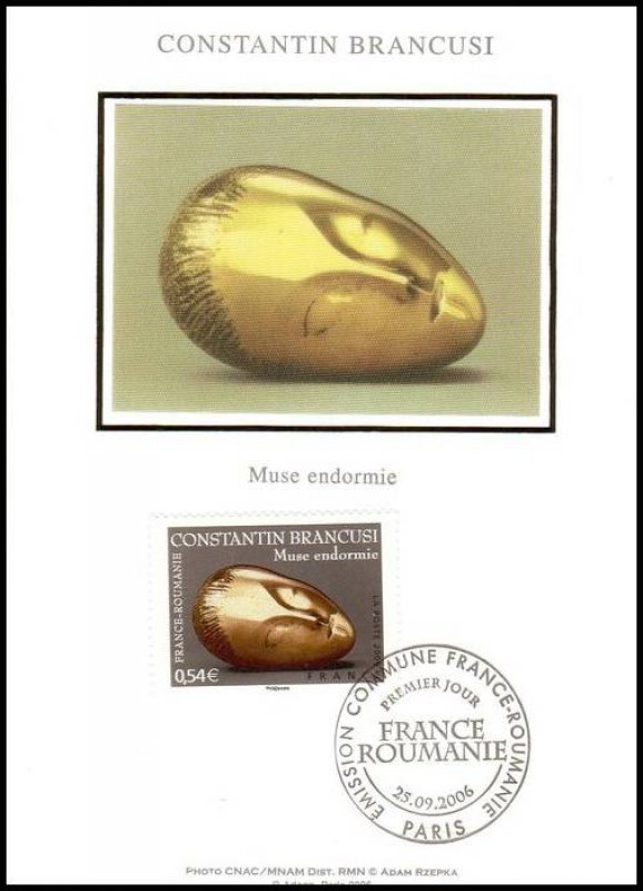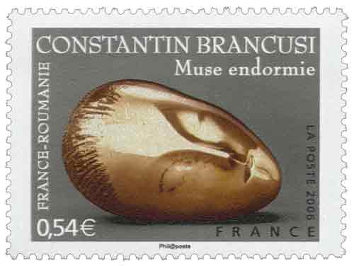 | Description | Émission conjointe avec la Roumanie. Muse endormie, œuvre de Constantin Brâncuşi (1876-1957), sculpteur roumain |