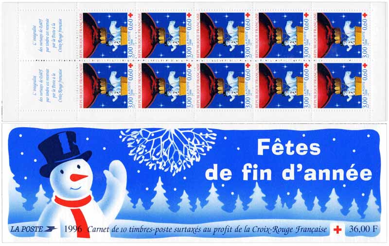 | Description | Au profit de la Croix-Rouge française. Fêtes de fin d'année - Ours blanc et bonhomme de neige dans un ballon |