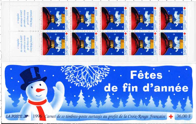 | Description | Au profit de la Croix-Rouge française. Fêtes de fin d'année - Ours blanc et bonhomme de neige dans un ballon |