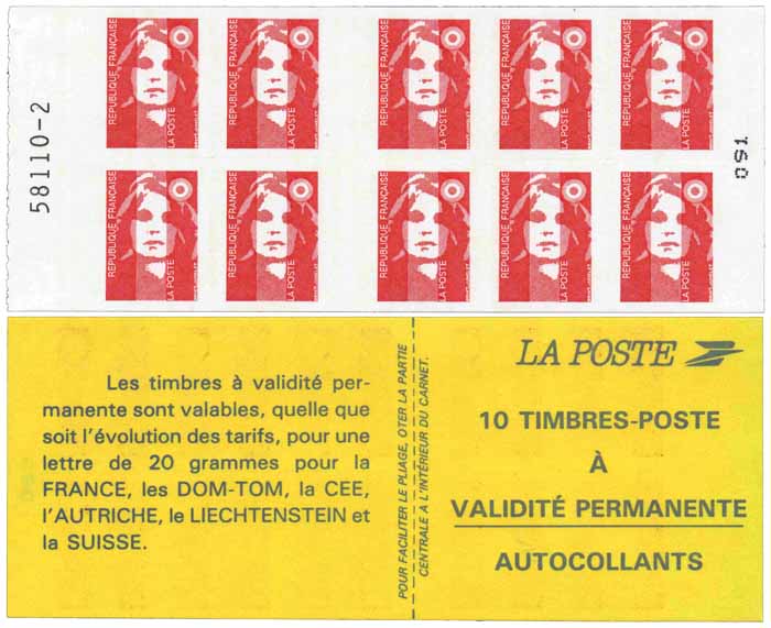| Commentaire | Carnet à plat de guichet En savoir plus sur Wikipédia : Marianne du Bicentenaire |