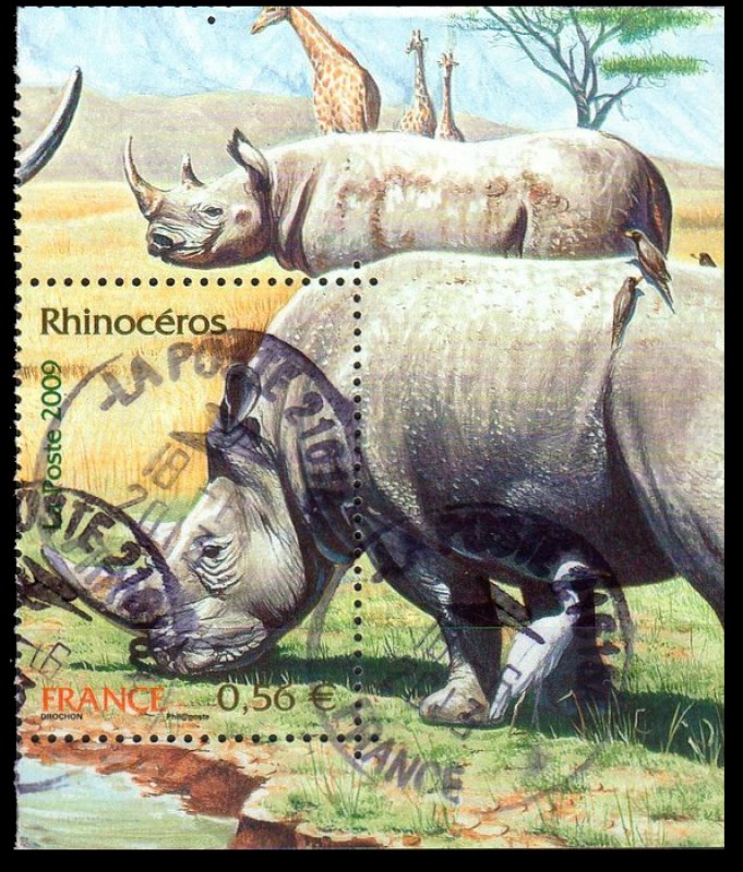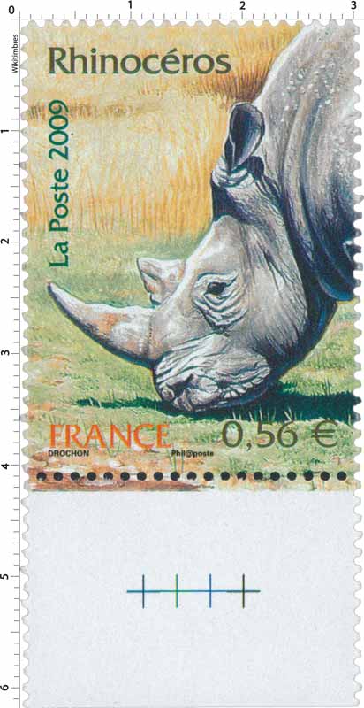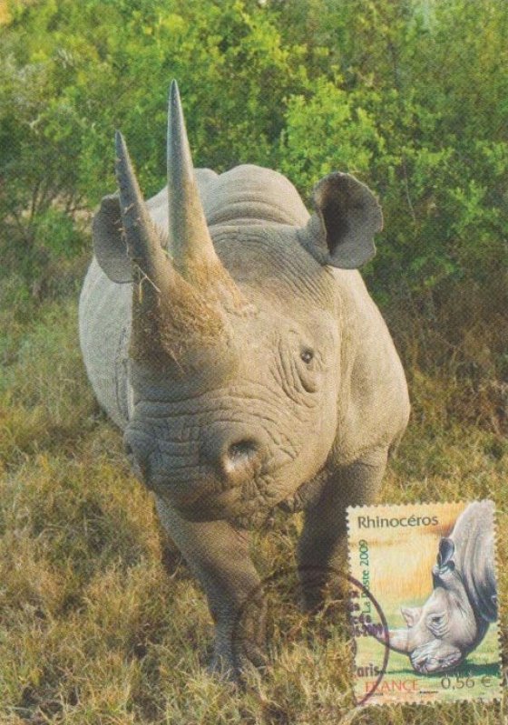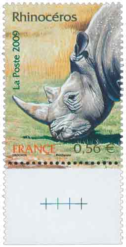 | Description | Animaux disparus ou menacés d'extinction : Rhinocéros, provenant d'une feuille de 42 TP |