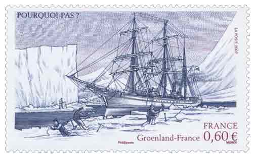 | Commentaire | Jean Batiste Charcot (1867-1936), scientifique et explorateur des régions polaires. Le Pourquoi pas. Les timbres de l’émission commune avec le Groenland illustrent le thème des expéditions internationales parties du Groenland. Deux timbres en diptyque sont émis par la France, un portrait de Jean-Baptiste Charcot sur celui de gauche, son bateau le Pourquoi-Pas ? à droite. Médecin, Charcot fut aussi marin et le premier explorateur à pénétrer sur la côte orientale du Groenland. En 1934, il installera au Groenland la mission de Paul-Émile Victor dont le portrait illustre le timbre que le Groenland émet avec le timbre Pourquoi-Pas ?. Charcot disparut en 1936 lors du naufrage de son bateau près des côtes islandaises. Émission conjointe France-Groenland |