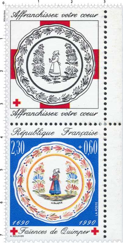 | Description | Au profit de la Croix-Rouge française. Faïence de Quimper (depuis 1708, dans le quartier faïencier historique de Locmaria, près du centre ville) |