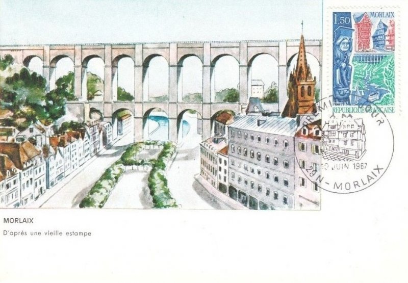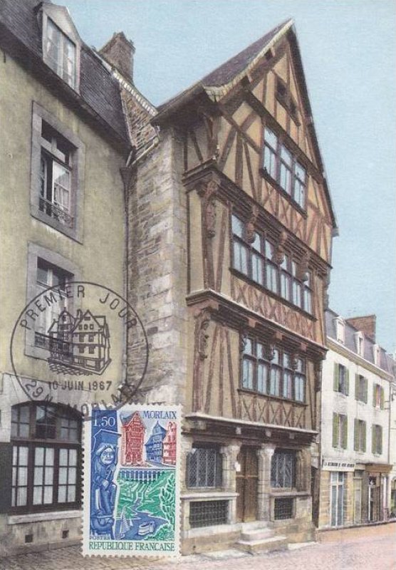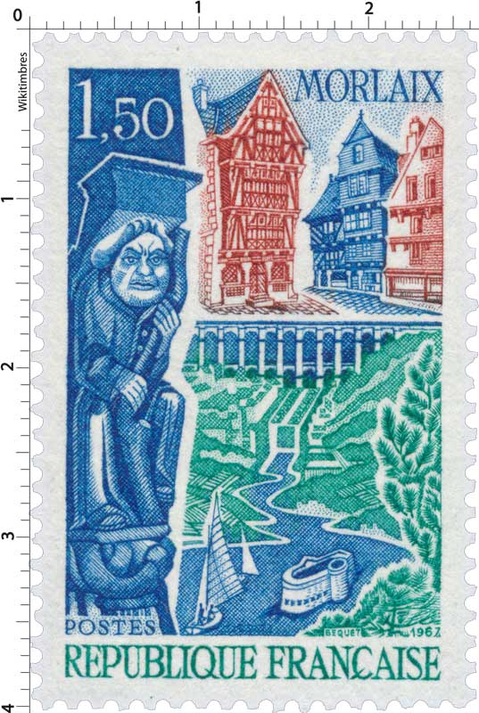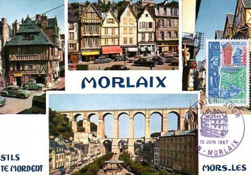 | Commentaire | Visuel : à gauche : le "bonhomme de Morlaix", statue (ou grotesque) en bois du XVIe siècle, d'une maison de la Grand'rue haut droit : maisons médiévales à pan de bois - en dessous : le viaduc ferroviaire de Morlaix, surplombant la ville en bas : le Château du Taureau en baie de Morlaix (construction entre 1542 et 1544, puis remise en état vers 1614. Entre 1689 et 1745, pour Louis XIV, Vauban transforme et consolide le fort. Son usage militaire est déclassé en 1883. (classement M.H. 29 juil.1914). Morlaix, c’est un peu comme un vieux grimoire que tu ouvres au hasard et qui sent encore la mer, le lin et la poudre. Nichée là où le Trégor flirte avec le Léon, cette ville du Finistère ne paye pas de mine au premier abord… jusqu’à ce que tu lèves les yeux. Boum. Un viaduc monumental en granit te traverse le ciel. Et plus bas ? Des maisons à colombages, des venelles au nom croustillant et des escaliers qui grimpent comme s’ils voulaient rejoindre les mouettes. Ce coin-là était déjà occupé au IIIe siècle – eh oui, Morlaix descend de « Mons Relaxus », une cité gallo-romaine dont on a retrouvé des monnaies ! Au XVIe, c’est la fête : la ville explose de richesses, avec ses toiles, son beurre, ses chevaux… Des voiliers anglais, danois ou hanséatiques mouillent dans la rade. Et ça, tu le ressens encore dans ses façades étroites, ses vitrines médiévales, et surtout cette fameuse « maison de la Reine Anne » – un chef-d’œuvre de bois sculpté où l’escalier te donne l’impression de monter dans un décor de théâtre. Légende ou vérité ? Certains disent qu’elle n’y a jamais mis les pieds… mais bon, l’histoire aime bien enjoliver les choses. Mais attention, Morlaix n’est pas qu’un musée figé. Son viaduc, construit entre 1861 et 1864, est un monstre élégant de 284 mètres qui encadre la ville comme un tableau. Et aujourd’hui ? On y vient pour son marché, son musée dans l’ancien couvent, ses départs vers les Monts d’Arrée ou la côte sauvage du Trégor. Bref, une étape bretonne qui mélange histoire, granite et beurre salé. Et qui te murmure, sous la pluie ou au soleil, que le vrai voyage commence quand on ralentit le pas. WikiTimbres |