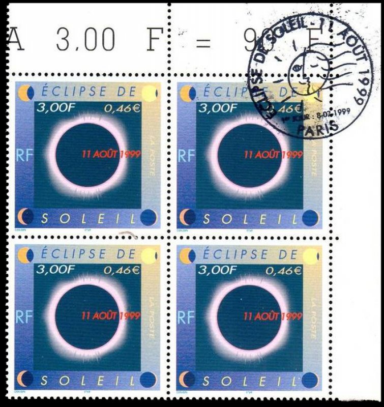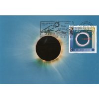 | Description | Éclipse de soleil, le 11 août 1999. Illustration de la couronne solaire visible pendant le maximum d'une éclipse totale, les autres phases sont représentées dans chaque coin du timbre |
