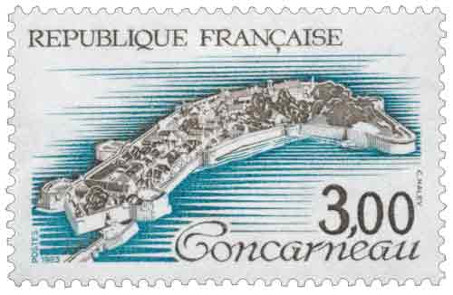 | Commentaire | Installée dans l’estuaire du Moros, la Ville Close de Concarneau constitue l’un des ensembles fortifiés les plus emblématiques du littoral breton, ce que rappelle ce timbre émis en 1983 dans une série consacrée aux sites et monuments français. L’histoire du lieu débute dès l’Antiquité tardive avec l’implantation d’un établissement religieux sur un îlot naturellement protégé, avant que la vocation défensive du site ne s’impose progressivement en raison de sa position stratégique sur la côte cornouaillaise. À partir du Moyen Âge, la Ville Close devient une véritable forteresse maritime, dotée de remparts élevés aux XIVᵉ et XVᵉ siècles, destinée à contrôler l’accès au port et à protéger la population des incursions ennemies. Ce timbre renvoie à un passé militaire marqué par les affrontements franco-anglais, notamment lorsque Bertrand Du Guesclin reprend la place aux Anglais, puis par les guerres de Religion, au cours desquelles Concarneau change temporairement de camp avant d’être reconquise par les troupes royales. À la fin du XVIIᵉ siècle, les travaux ordonnés par Louis XIV et menés sous la direction de Vauban renforcent encore le dispositif défensif, donnant à la Ville Close son aspect définitif et assurant son rôle stratégique pendant plusieurs siècles. Au moment de l’émission, ce timbre évoque également l’évolution économique de Concarneau, passée d’une place forte à un port de pêche majeur, reconnu pour son activité thonière et pour la modernisation constante de ses infrastructures maritimes. Par cette représentation, l’administration postale met en lumière un site où se rejoignent patrimoine architectural, histoire militaire et tradition maritime, illustrant la richesse et la diversité des villes fortifiées du littoral français. Article rédigé pour WikiTimbres |