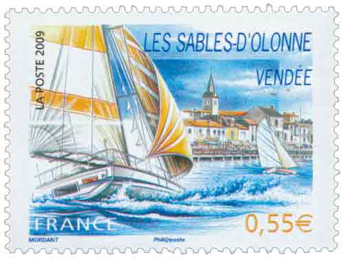 | Commentaire | La manifestation premier jour est organisée les 31 janvier et 1er février aux Sables-d'Olonne. La tour d'Arundel, devenu le phare de La Chaume, est dessiné par Claude Perchat sur le timbre à date spécial. Sous-préfecture du département de la Vendée, la ville des Sables-d’Olonne vit depuis toujours au rythme de la mer. Déclarée au XVᵉ siècle par Louis XI comme port principal du Pays, elle devient le premier port morutier du royaume au XVIIe siècle, et premier port sardinier de France au cours du XIXe. Avec l’apparition du chemin de fer, et les premiers bains de mer devenant à la mode, la ville devient une station balnéaire au cours du XIXe siècle. Reconnue comme une des plus belles plages d’Europe, la ville des Sables-d’Olonne fait partie de la Côte de Lumière. Mais la notoriété de cette ville est surtout liée à la course de référence : le Vendée Globe. Cette course qui se déroule tous les quatre ans au départ des Sables-d’Olonne, est une épreuve sportive qui consiste à faire le tour du monde, à la voile, en solitaire, sans escale et sans assistance. Le départ est prévu le 9 novembre 2008 pour une arrivée fin janvier, début février 2009…. |