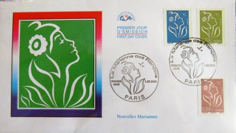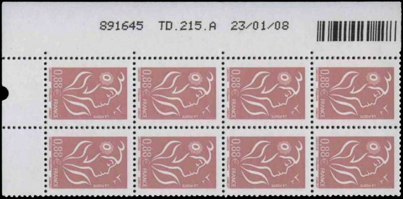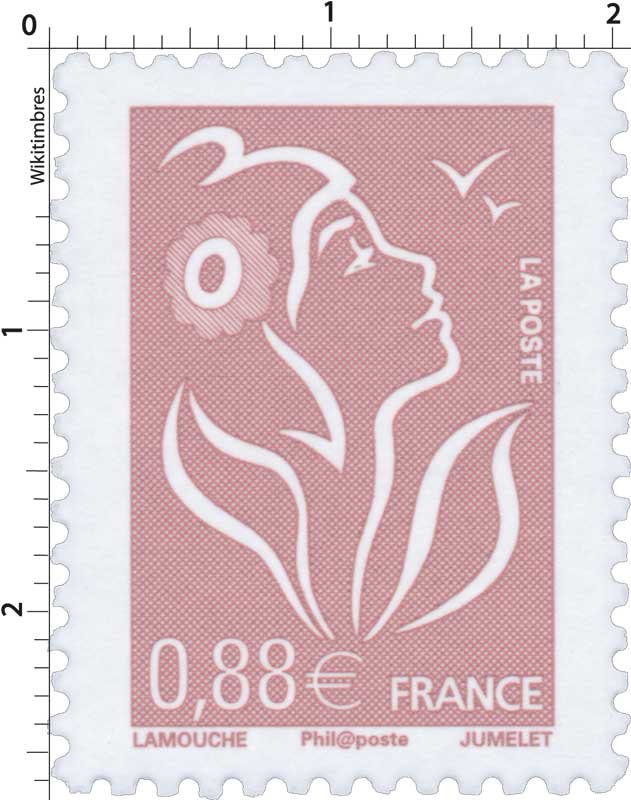 | Commentaire | Marianne des Français. Un cachet premier jour est disponible le 1er janvier lors de la manifestation de la Fête du timbre de Paris. Le cachet premier jour de Lamouche reprenant le même profil est celui utilisé lors de la première émission en janvier 2005. |