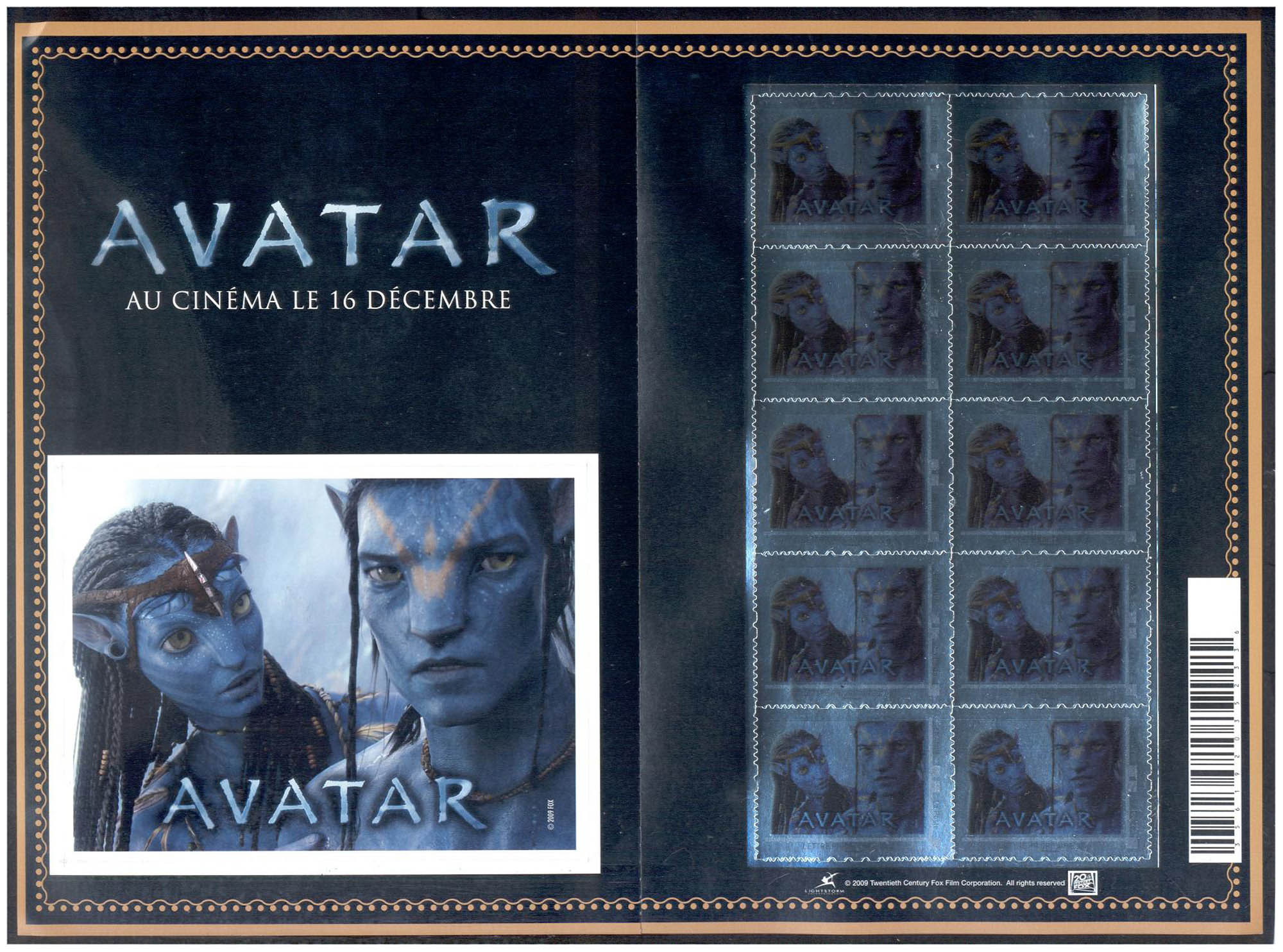 A l’occasion de la sortie le 16 décembre 2009 du film AVATAR, La Poste édite un timbre collector possédant un effet spécial métallique bleuté.