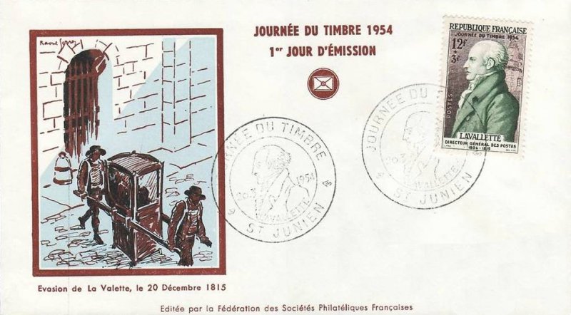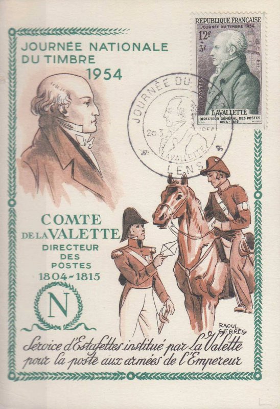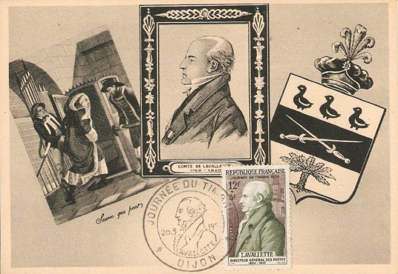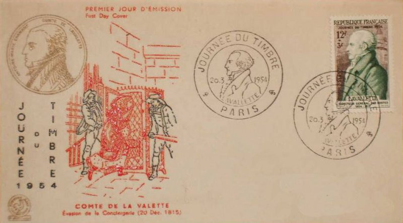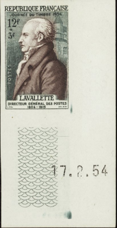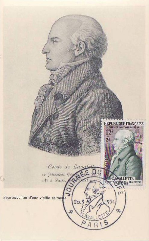 | Description | Journée du timbre 1954. Comte de La Vallette (1769- 1830), militaire et directeur général des Postes sous le Premier Empire de 1804 à 1814 et pendant les Cent-Jours, né à Paris |