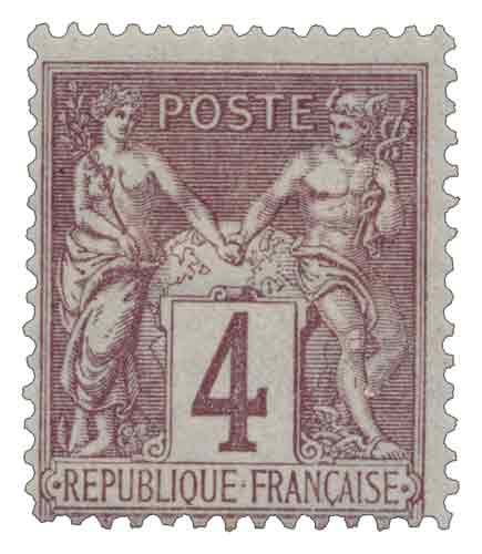 | Commentaire | Sage. Type II (N sous U) En savoir plus sur Wikipédia : Type sage ou allégorie de la Paix et le Commerce s’unissant Émis en septembre 1877, le 4 c lilas-brun remplace le 4 c vert (n°63) utilisé lors des premiers tirages du type Sage. Destiné surtout aux imprimés un peu plus lourds et à certains affranchissements composés, il complète la série des faibles faciales introduites après la réorganisation des tarifs de la fin des années 1870. La couleur lilas-brun présente des nuances authentiques allant du lilas légèrement grisé à un brun lilacé plus soutenu selon les lots d’encre. Les impressions peuvent montrer de légères irrégularités typiques des petites valeurs de la série. En oblitéré, les cachets à date ordinaires dominent ; les utilisations réelles sur imprimés ou journaux affranchis à 4 centimes sont plus difficiles à réunir et constituent les pièces les plus représentatives. Aucun faux d’époque notable n’est signalé et il n’existe pas de réimpressions Granet pour cette valeur. |
