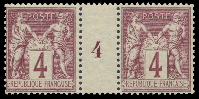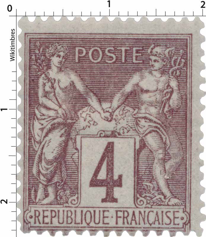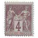 | Commentaire | Sage. Type II (N sous U) En savoir plus sur Wikipédia : Type sage ou allégorie de la Paix et le Commerce s’unissant Émis en septembre 1877, le 4 c lilas-brun remplace le 4 c vert (n°63) utilisé lors des premiers tirages du type Sage. Destiné surtout aux imprimés un peu plus lourds et à certains affranchissements composés, il complète la série des faibles faciales introduites après la réorganisation des tarifs de la fin des années 1870. La couleur lilas-brun présente des nuances authentiques allant du lilas légèrement grisé à un brun lilacé plus soutenu selon les lots d’encre. Les impressions peuvent montrer de légères irrégularités typiques des petites valeurs de la série. En oblitéré, les cachets à date ordinaires dominent ; les utilisations réelles sur imprimés ou journaux affranchis à 4 centimes sont plus difficiles à réunir et constituent les pièces les plus représentatives. Aucun faux d’époque notable n’est signalé et il n’existe pas de réimpressions Granet pour cette valeur. |