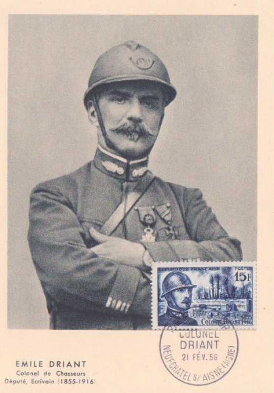 | Description | 40e anniversaire de la mort du colonel Émile A.-C. Driant (1855-1916), héros de Verdun, né à Neufchâtel-sur-Aisne |