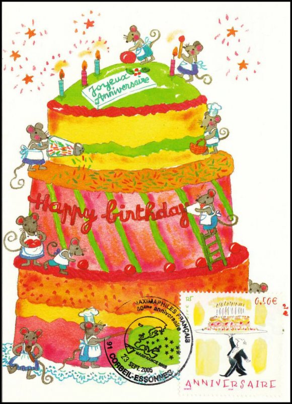 | Description | Timbre pour anniversaire. Représentation d'un majordome portant à bout de bras un gigantesque gâteau d'anniversaire. Dessin de Sempé, illustrateur, né en 1932 à Bordeaux |