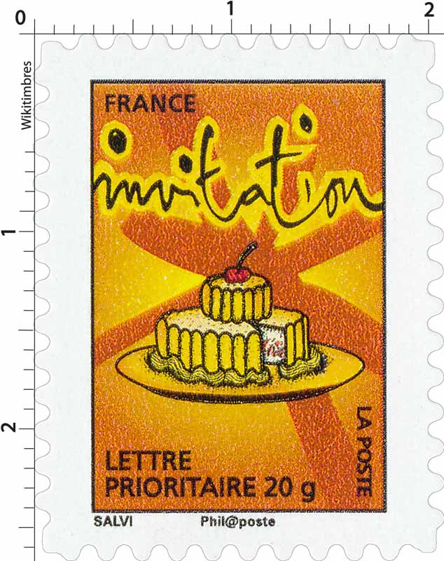 | Commentaire | La mise en vente anticipée a lieu le 5 septembre au Jardin d'acclimatation de Paris. Salvi reprend un de ses personnages en plein saut pour illustrer le cachet premier jour. « votre bonne humeur », « vos bonnes nouvelles », « votre enthousiasme », « vos envols », « vos fantaisies », « votre joie de vivre », « vos mots doux », « vos mystères », « votre patience », « vos promesses », « vos secrets », « vos surprises » ou « tous vos élans ». Timbre sans millésime |