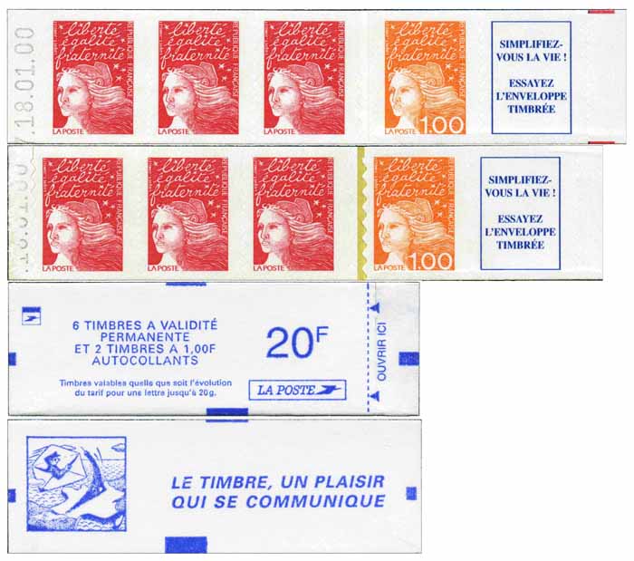 | Commentaire | Type II accent sur timbrée. Carnet pour distributeur composé de 2 bandes de timbres comprenant chacune 3 TVP, un timbre à 1fr et une vignette. |
