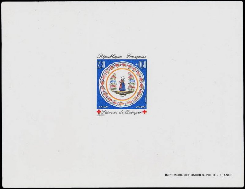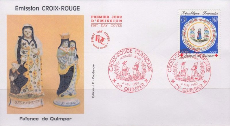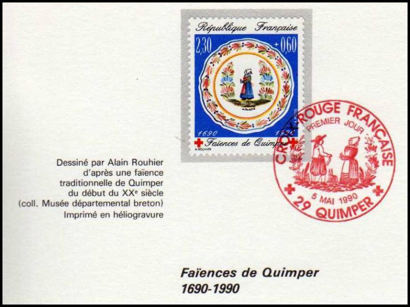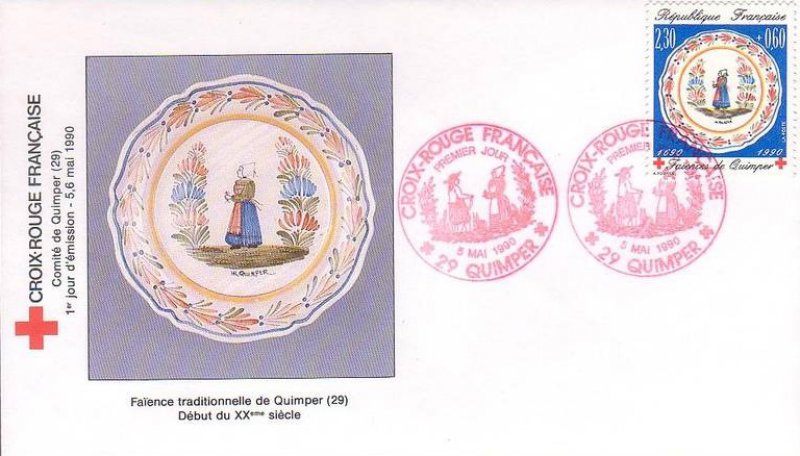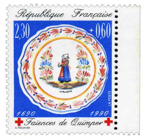 | Description | Au profit de la Croix-Rouge française. Faïence de Quimper (depuis 1708, dans le quartier faïencier historique de Locmaria, près du centre ville) |